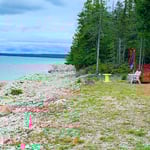 Description: Forested waterfront landscaped lot of 2.9 acres and 504.7 feet of Meldrum Bay beach frontage with an eastern exposure, year round access and hydro. Currently improved by a finished cabin 12 x 16 feet and a cottage shell 16 x 24 feet should you wish to camp or ready for your own home build with a full view of the pristine water of the North Channel. Most contents on site included with the exception of the trailer. The lot has been resurveyed into two Parts to facilitate applying to create two lots. Extras include a shed, cooking shelter over an open fire, outdoor privy, covered and open decking including the trailer deck and overhang shelter 8 x 24 feet. Groomed to the water. $397,000 (1677)