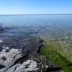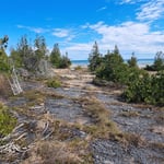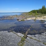 Description: Lake Huron Cabin 10 x 15 feet plus screened porch 10 x 6 feet on 25 acres with 150 feet of beautiful, flat, limestone water frontage. Great view while walking on the long beach. There is a shed (could be bunkie) and privy plus all the contents including a wood burning stove and 2 sea kayaks. Excellent driveway from Cedar Tree Trail via Little Lake Huron and Pebble Roads. Very close to Misery Bay. $189,000 (1560) Taxes $363 (2021)