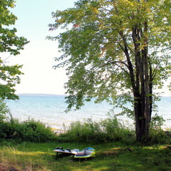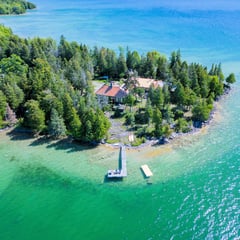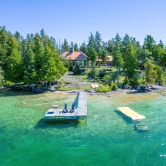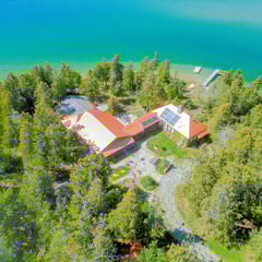 Description: Come and see Cedar Birch Cottage which is nestled in a premier, west facing peninsula on the best part of Lake Manitou with 2380 feet of shoreline and 4.8 acres. This cottage has the ultimate level of privacy with the nearest neighbour being, either, over a kilometer away, or across the bay. You will have water views from every part of the cottage, either west, north or south. You can enjoy sunrises from the front porch and, then, gorgeous sunsets from your choice of decks. This is an historical cottage which was built, originally, in 1907 by the Watson Family, and the original charm has been, lovingly, preserved. There is the original huge stone fireplace going up to a vaulted ceiling, cedar shingled buildings, and multiple, cozy, bunkies. A large modern addition was, tastefully, built with all the convenience of today’s living without losing the beautiful charm of yesteryears. The main spacious cottage has 3 bedrooms, 4 bathrooms, 2 kitchens, 2 living rooms and a laundry area. There is an airtight wood stove that heats efficiently along with a beautiful Elmore stove and propane heaters. The cottage comes with a fridge, stove, washer and dishwasher. There are multiple decks and porches that provide water views in all directions. There are 3 original bunkhouses that are beautifully furnished with 2 beds in each. One has electricity and its own 2 piece bathroom. Along with a spacious tool shed and a 3 car garage with 2 barn doors, there is an historical ice hut, one of the few remaining on Manitoulin Island. These ice huts were used 120 years ago before electricity, preserving ice from winter to provide refrigeration in the summer. Own a piece of history. There are 2 Naylor brand docks: one is sheltered for your boats and the other, larger, one is wonderful for swimming, fishing and summer fun. There is excellent bass fishing from the end of the dock. Just cast and reel them in. If you prefer to walk into warm, shallow water, go to the South Beach where the huge,flat, rocks create an easy entry into sun warmed ,shallow water that is great for small children. The properyt is powered by a new and powerful, green, solar system that will meet all your electrical needs without any hydro bills. The water intake system was updated this Spring to provide easy and clean water from the lake. The propane tank is owned, so no rental fees. Come to Cedar Birch Cottage for the ultimate in complete privacy, luxury, peace, quiet and relaxation. $1,099,000 (1610)