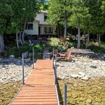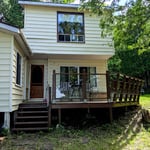 Description: Maple Ridge Cottage with gorgeous scenic views over Mudge Bay next to the pretty Village of Kagawong. Treed lot, with 150 fteet of small stone frontage leading out to a sandy bottom, with year round access, a private septic system and municipal water. The cottage is 935 square feet with dining porch, kitchenette, living room and bunk room on the first level and a spacious bedroom on the second floor with a 4 piece bath. The bunkie by the water needs some finishing to become the perfect guest house. The water is visible from the bedroom, living and dining rooms, the attached deck, shore deck and, of course, the dock. Many contents included. The interior has some BC cedar and Manitoulin Pine accents. The yard is spacious with a fire pit. This is cottage life on the North Channel of Georgian Bay with spectacular sunrises and reflecting sunsets. $349,000 (1571)