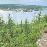 Description: East Bluff of Gore Bay with an estimated 83 acres and 5,600 feet of water frontage, facing westerly, consisting of pristine white stone shorline, beautiful Niagara Escarpment outcrops, forest stretching over 2.5 km and some table land, with depth, fronting on Scotland Road on each side of, a private property with the number 347 A&B. It has all been surveyed on four reference plans. The views of the Town of Gore Bay and the North Channel are spectacular. Think of the possibilities.